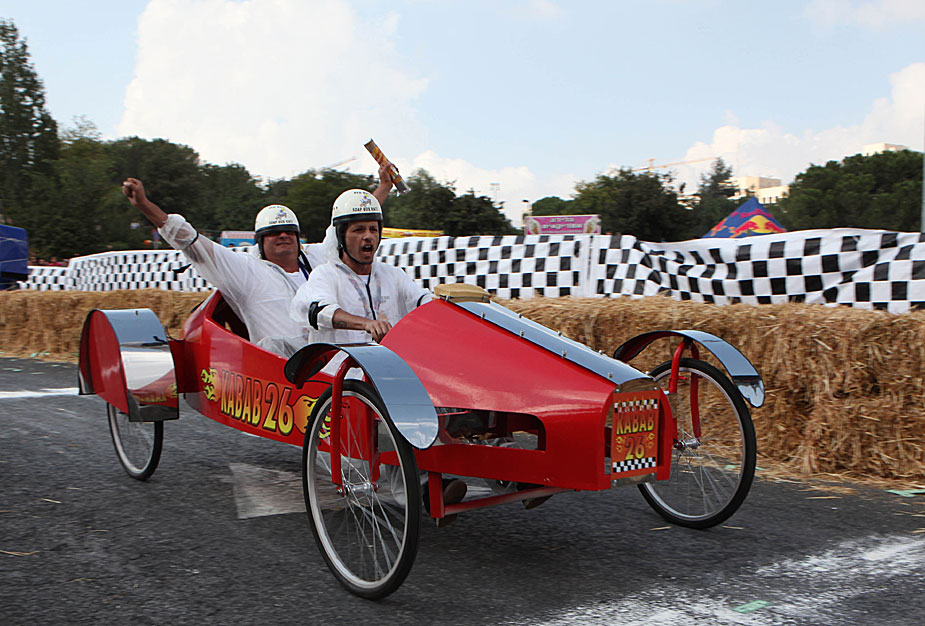 50輛“肥皂盒車”10月7日參加了耶路撒冷舉行的“肥皂盒車”趣味競賽。賽道設(shè)置在市中心一條大街的一段斜坡上,比賽者駕駛各種千奇百怪的賽車從起點一路滑下。圖片來源:中國新聞網(wǎng)