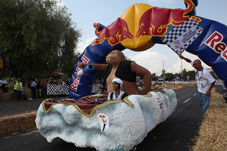 50輛“肥皂盒車”10月7日參加了耶路撒冷舉行的“肥皂盒車”趣味競賽。賽道設置在市中心一條大街的一段斜坡上,比賽者駕駛各種千奇百怪的賽車從起點一路滑下。圖片來源:中國新聞網