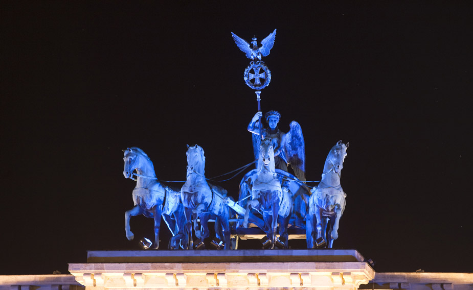 10月14日德國(guó)柏林將迎來(lái)一年一度的“燈節(jié)”。13日晚在德國(guó)首都柏林,勃蘭登堡門上的雕塑在“燈節(jié)”預(yù)演中被照亮。