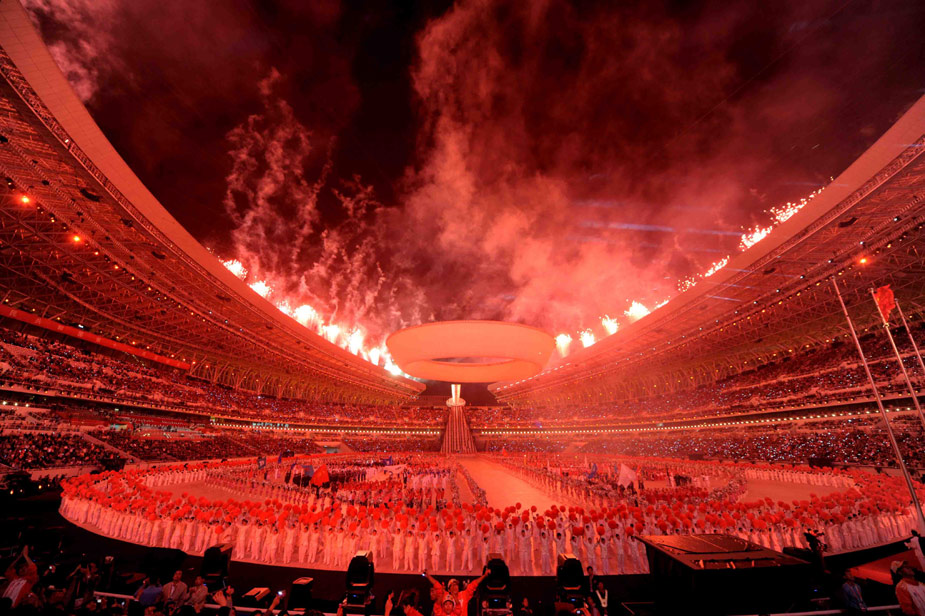 十月十六日晚,中華人民共和國第十一屆運動會在山東濟南奧體中心隆重開幕。中新社發 陳文 攝