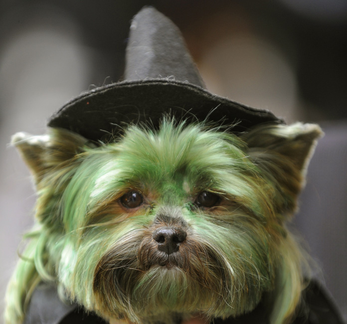 10月18日,在美國紐約時報廣場,眾多小狗在此參加第5屆年度狗狗化妝舞會表演。主辦方稱,這一活動的目的在于喚起人們對無家可歸和遭遺棄動物的關注。