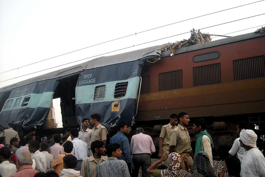 印度北方邦21日凌晨發生兩列火車相撞事故, 一輛來自西南部果阿的快運列車在馬圖拉附近與一列來自西部拉賈斯坦邦梅瓦爾的快運列車相撞,造成15人死亡。來源:中國新聞網