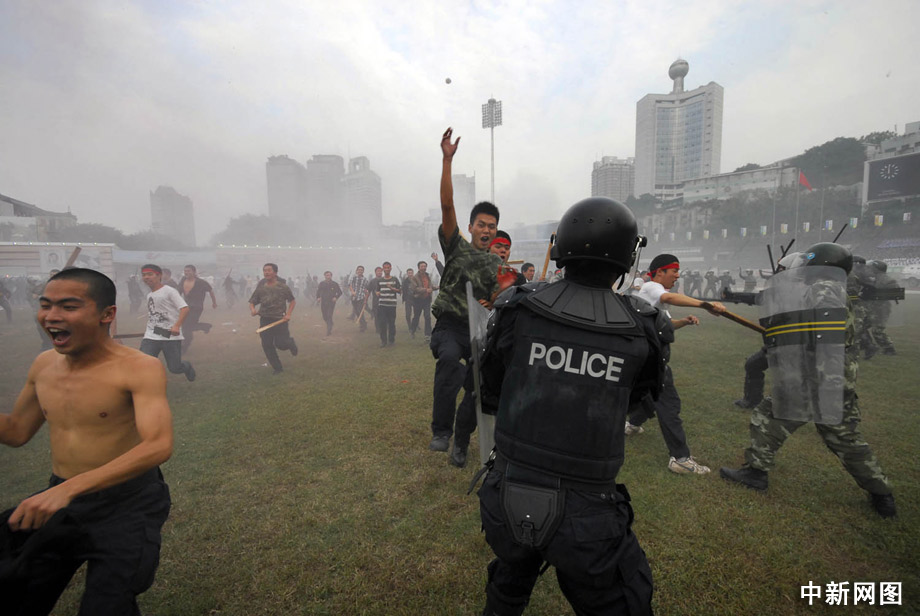 23日,推進“平安重慶”建設突發事件應急演練在該市渝中區大田灣體育場舉行,重慶各警種突精銳力量重裝登場,將各類事件一一化解。