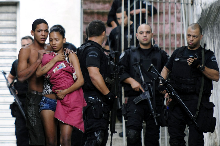 周日《巴西里約熱內盧警方與販毒團伙展開激戰。這場沖突已經造成十二人死亡,多人受傷。一架警方直升機還在激戰中被擊落。目擊者稱,沖突現場槍聲十分激烈。來源:中國新聞網
