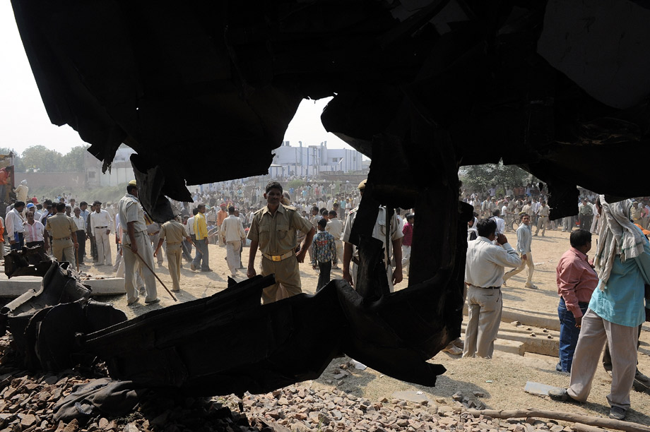 周三(21日)在距離印度首都新德里約80公里的馬圖拉,救援人員在火車相撞現(xiàn)場(chǎng)工作。當(dāng)日早晨,印度一列來(lái)自西南部果阿的快運(yùn)列車與一列來(lái)自西部梅瓦爾的快運(yùn)列車在此相撞,致使21人喪生、17人受傷。來(lái)源:來(lái)源:中國(guó)新聞網(wǎng)