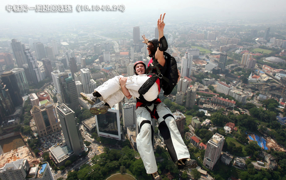 10月23日,馬來西亞吉隆坡電訊塔舉辦2009馬來西亞吉隆坡塔國際跳傘節。>>點擊觀看詳細內容