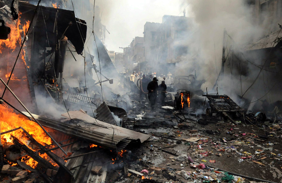 10月28日,巴基斯坦西北部城市白沙瓦一個人口密集的集市遭汽車炸彈襲擊。圖片來源:中國新聞網