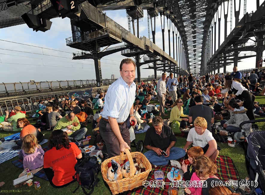 澳大利亞六千名群眾25日早上齊集舉世聞名的悉尼港大橋,坐在綠油油的草地上享受早餐。這是迄今在大橋上舉行的規模最大的一次集體早餐。參加者一邊呼吸新鮮空氣,欣賞美麗風景,一邊品嘗美食。>>點擊觀看詳細內容