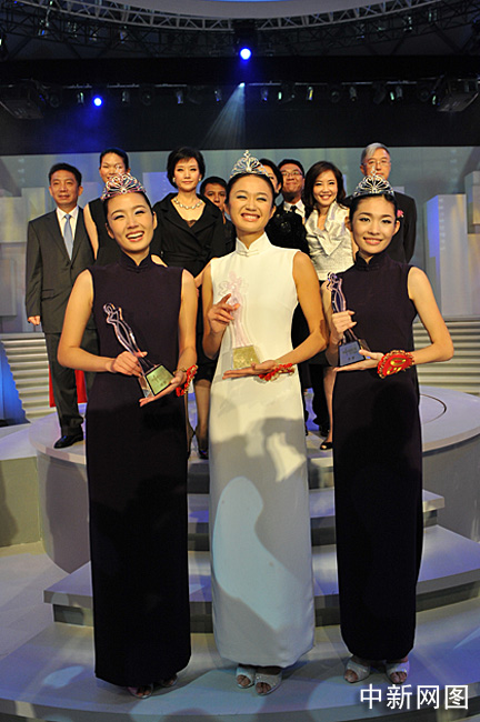 10月31日晚,“2009中華小姐環球大賽”總決賽在上海國際體操中心隆重上演,最終來自北京的田桐、上海的朱盈菲和陜西的李若凝分別摘得本屆大賽的冠亞季軍。中新網記者 金碩 攝