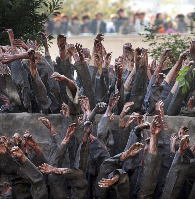 10月31日是西方的“萬(wàn)圣節(jié)”,世界各地的群眾穿著奇異的服飾、打扮鬼魅的造型迎接“鬼節(jié)”的到來(lái)。圖為在日本東京,人們采用怪異的方式迎接鬼節(jié)的到來(lái)。