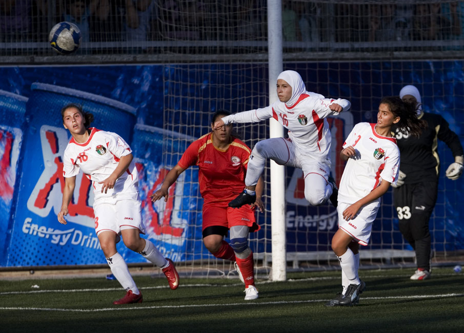 周一(26日),約旦和巴勒斯坦兩國女子足球隊進行了一場友誼賽。 來源:中國新聞網