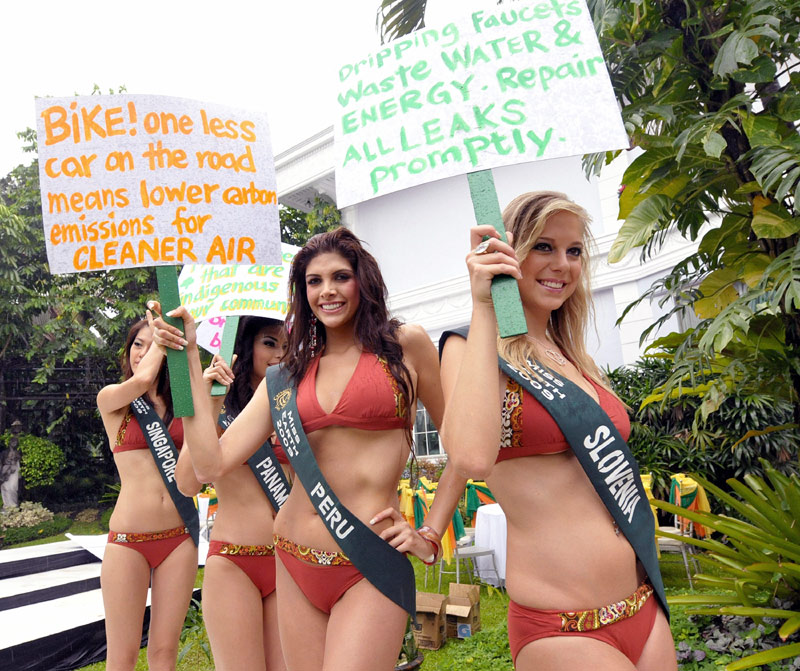 2009世界綠色環保大使小姐決賽在菲律賓進行,來自世界各地的90名佳麗參與角逐。世界綠色環保大使(地球小姐)評選,是全世界唯一以“綠色環保”為主題注冊的國際頂級權威大賽,由菲律賓總統阿羅約創始。圖片來源:中國新聞網