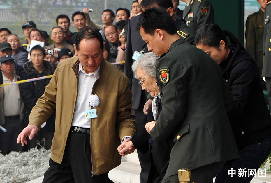 11月6日,“中國航天之父”錢學森的追悼會在北京八寶山舉行。圖為錢學森夫人蔣英送別丈夫。中新網記者 金碩 攝