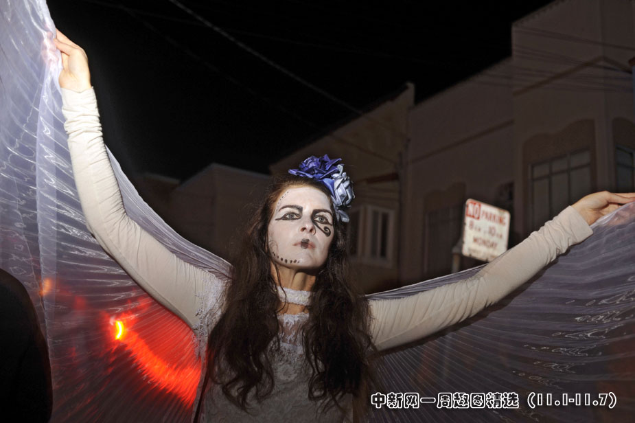 11月2日,美國舊金山居民扮成鬼怪模樣慶祝“亡靈節(jié)”。>>點擊觀看詳細(xì)內(nèi)容