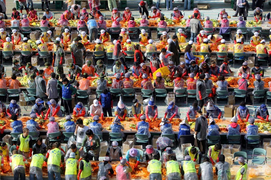 11月9日,約2700名韓國志愿者在首爾一所學校的操場上制作泡菜。