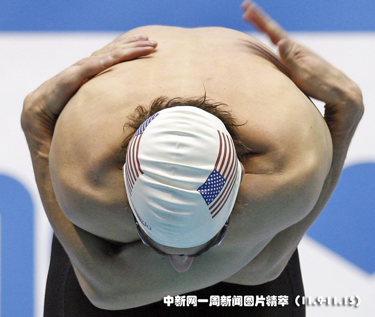 14日(周六),美國游泳名將飛魚菲爾普斯在柏林參加短池游泳錦標賽。
