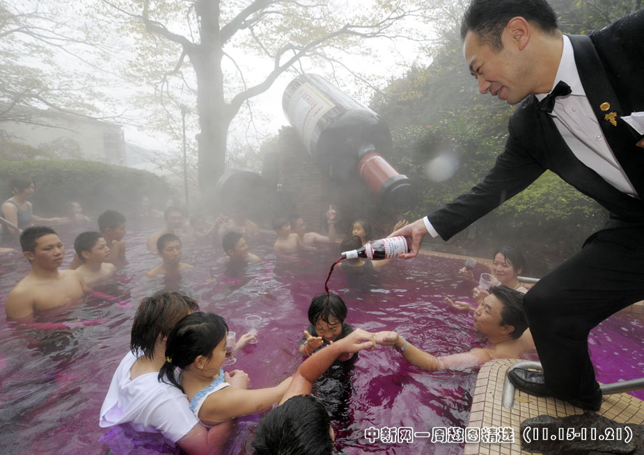 日本神奈川縣箱根小涌園SPA會(huì)所從11月19日開始舉行為期12天的戶外美酒溫泉浴。圖片來源:中國(guó)新聞網(wǎng)>>點(diǎn)擊觀看詳細(xì)內(nèi)容