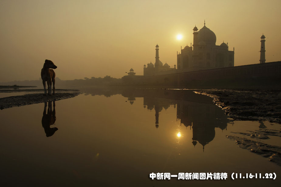 2009年11月18日,一只流浪狗在印度泰姬陵附近停留。圖片來源:中國新聞網