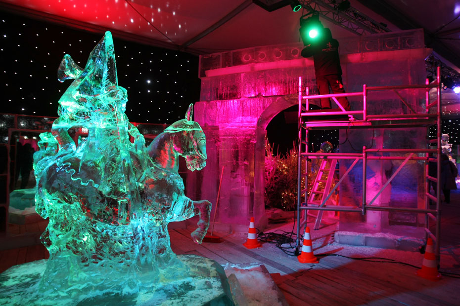 11月23日,為期一個月的“冰之魔術(shù)”藝術(shù)展在法國巴黎香榭麗舍開幕,16位藝術(shù)家利用440噸冰雕刻出精美的巴黎地標建筑和著名藝術(shù)家羅丹的“思想者”雕塑。圖片來源:中國新聞網(wǎng)