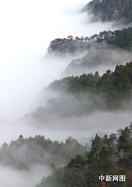 11月29日,受北方弱冷空氣影響,廬山出現平流云、佛光奇觀,佛光持續了近二個多小時。當日,整個廬山被濃濃的云霧所籠罩,若隱若現,宛如仙境。(胡國林 陳飛)