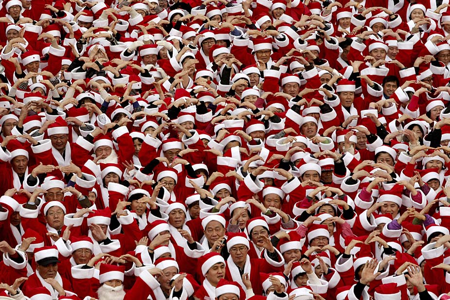 12月1日,韓國首都首爾市,一千多名“圣誕老人”舉行游行為社會慈善項目籌款。圖片來源:中國新聞網