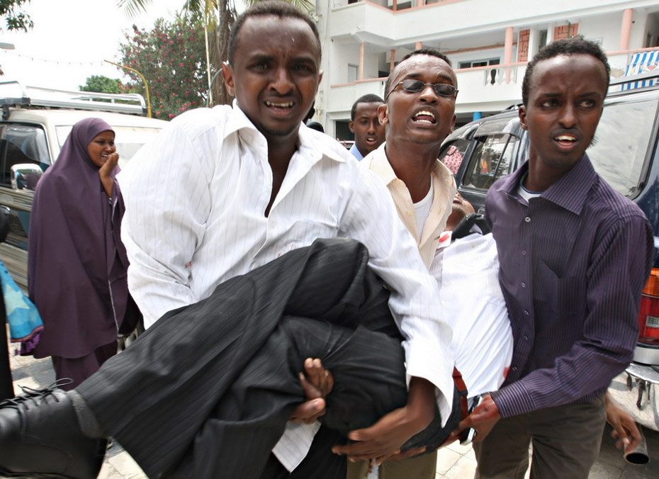 索首都摩加迪沙一家飯店3日發(fā)生的自殺炸彈襲擊事件至少已造成57人死亡,另有200多人受傷。 據(jù)索馬里官員稱,爆炸發(fā)生在該市南部政府控制區(qū)的一座飯店內(nèi)。當(dāng)時,多名政府高官正出席在飯店內(nèi)舉行的大學(xué)畢業(yè)典禮暨出國留學(xué)生歡送儀式。死者中包括索馬里衛(wèi)生部長、教育部長和高等教育與文化部長。另外,青年與體育部長在爆炸中受重傷。