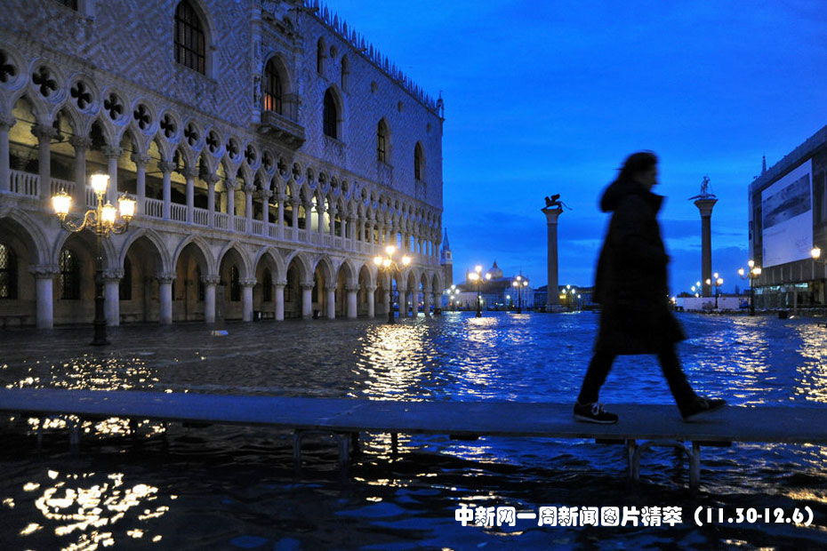 11月30日,意大利水城威尼斯受潮汐和一股強(qiáng)烈的熱帶風(fēng)暴影響再次被洪水淹沒(méi),部分地區(qū)最高水位達(dá)到1.31米。圖片來(lái)源:中國(guó)新聞網(wǎng)