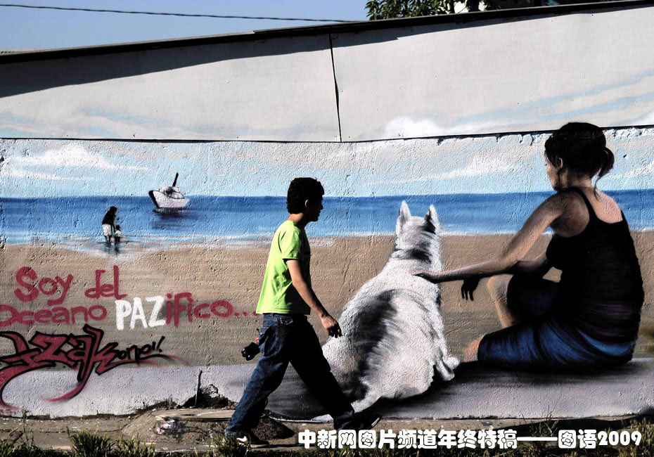 世界最長的涂鴉墻:11月15日,智利圣地亞哥近千名藝術家繪制了1800米長的涂鴉墻,打破了吉尼斯世界紀錄。圖片來源:中國新聞網
