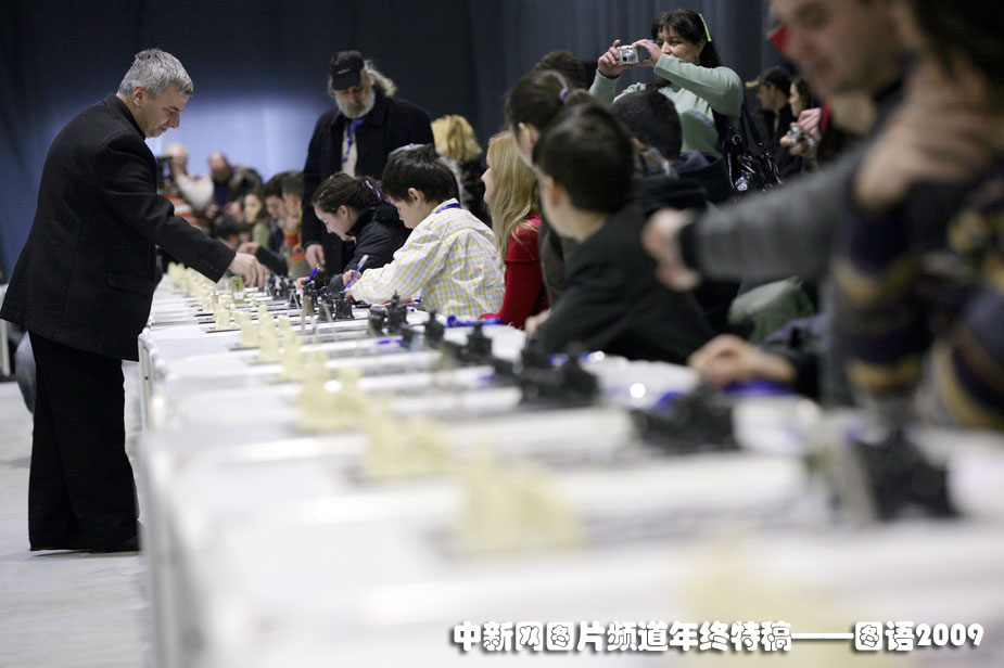 同時對弈對手最多:2月21日,保加利亞國際象棋選手基里爾格奧爾基耶夫與360人同時對弈,打破了吉尼斯紀錄。圖片來源:中國新聞網