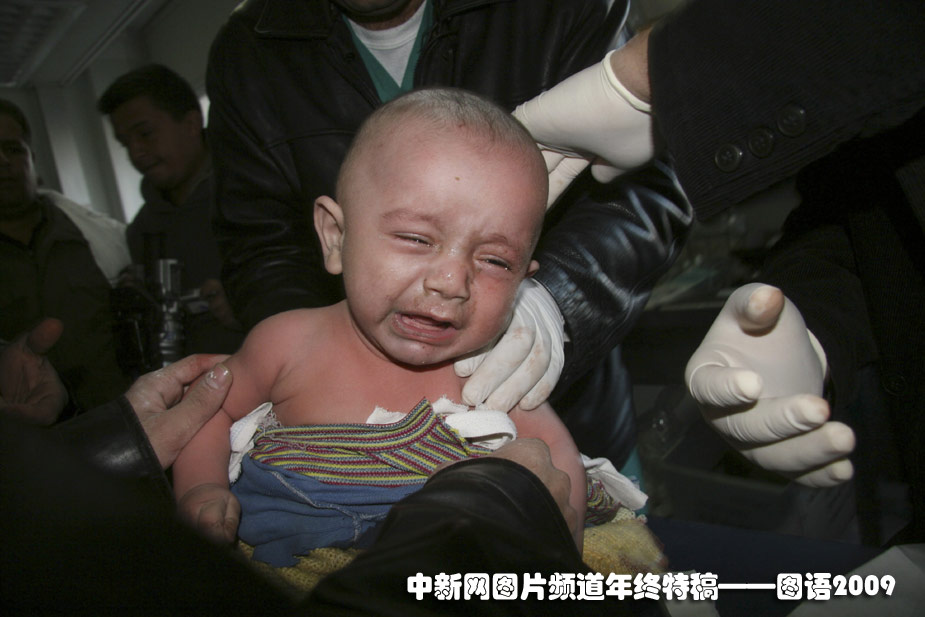1月6日,一名飽受加沙戰火的巴勒斯坦嬰兒。