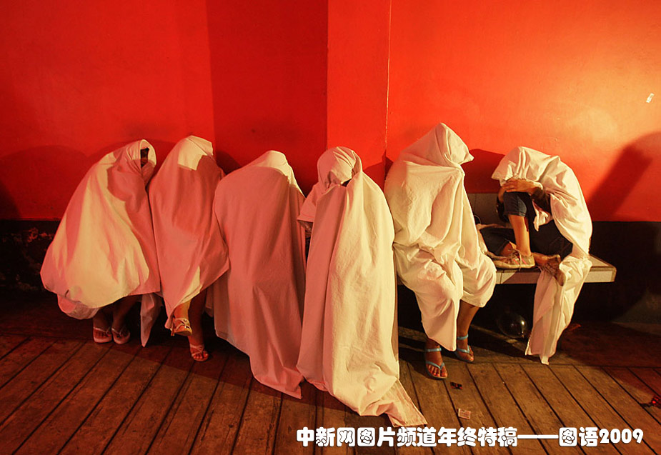 11月30日,秘魯首都利馬,來自紅燈區的性工作者準備接受HIV檢測。她們大多以白布蒙面。