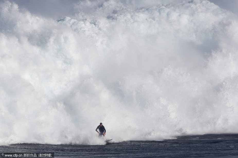 12月8日,美國夏威夷出現15米高罕見巨浪,一些勇敢的沖浪者都來到這里進行挑戰。圖片來源:CFP