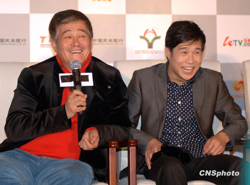 12月9日下午,張藝謀喜劇新作《三槍拍案驚奇》在京舉行首映發(fā)布會,導(dǎo)演張藝謀、大病初愈的趙本山攜孫紅雷、小沈陽、閆妮、倪大洪、程野、毛毛全明星主創(chuàng)團隊齊齊亮相,F(xiàn)場張藝謀、趙本山、小沈陽搞笑不斷,引得爆笑連連,上演了一出戲外喜劇。趙本山首度回應(yīng)了花兩億購買私人飛機一事,稱還沒有定下來。張藝謀表示會和“趙家班”繼續(xù)深度合作,并且豪言預(yù)計未來的中國電影單部影片票房可能達到2億美元。圖為張藝謀、趙本山、小沈陽成為“笑彈”。中新社發(fā) 李學(xué)仕 攝