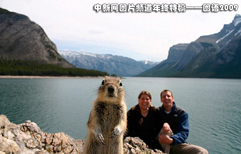 一對夫婦加拿大的一個國家公園旅游,打算留影紀念,他們將相機設為自拍模式,并調好了時間,可當他們擺好pose,即將拍攝的時候,一只頑皮的松鼠突然跳出來,“搶了鏡頭”。