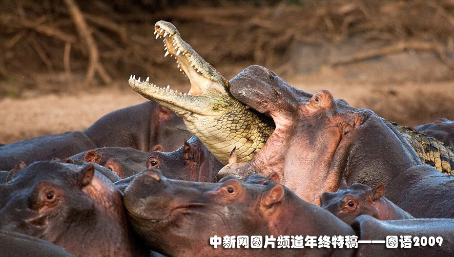 捷克野生動物攝影師Vaclav Silha在坦桑尼亞塞倫蓋蒂國家公園里拍攝到了非常令人震撼的場面。當時,一條鱷魚悄悄混入了一群正在河里洗澡的河馬中,但由于與一頭帶著小河馬的河馬媽媽太過接近,它很快就被敏感的母河馬發現。憤怒的河馬們立刻對它發起了猛烈地攻擊,這條冒失的鱷魚很快死于非命。