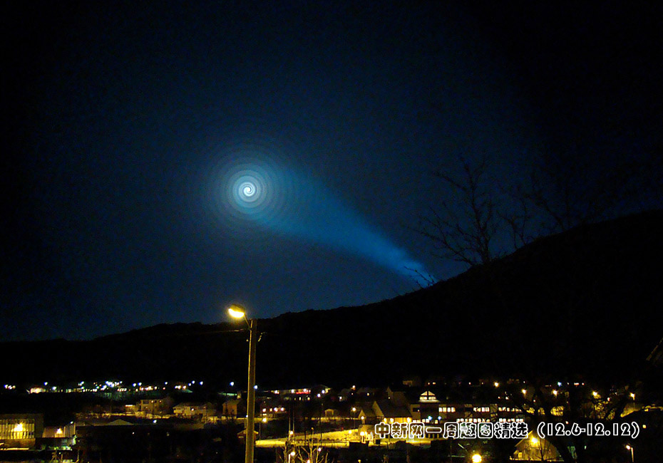 12月9日,挪威北部特羅姆瑟市上空發(fā)現(xiàn)不明“藍色發(fā)光螺旋狀”現(xiàn)象。圖片來源:中國新聞網(wǎng)>>點擊觀看詳細內(nèi)容