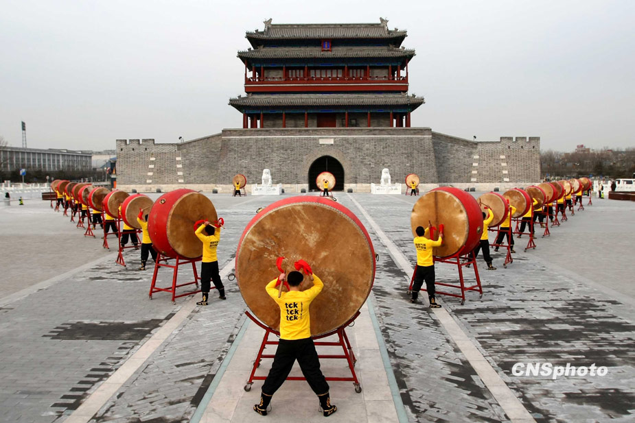 12月12日是氣候變化全球行動(dòng)日(Global Day of Action),國(guó)際環(huán)保組織綠色和平聯(lián)同北京20名鼓手,在北京古老的永定門城樓前擂響巨鼓,用震耳欲聾的鏗鏘鼓聲助威正在哥本哈根召開(kāi)的全球氣候大會(huì)。鼓手們以中國(guó)傳統(tǒng)的擂鼓助威方式,通過(guò)凝重急促的鼓聲向全世界發(fā)出警告:“拯救氣候,刻不容緩”。