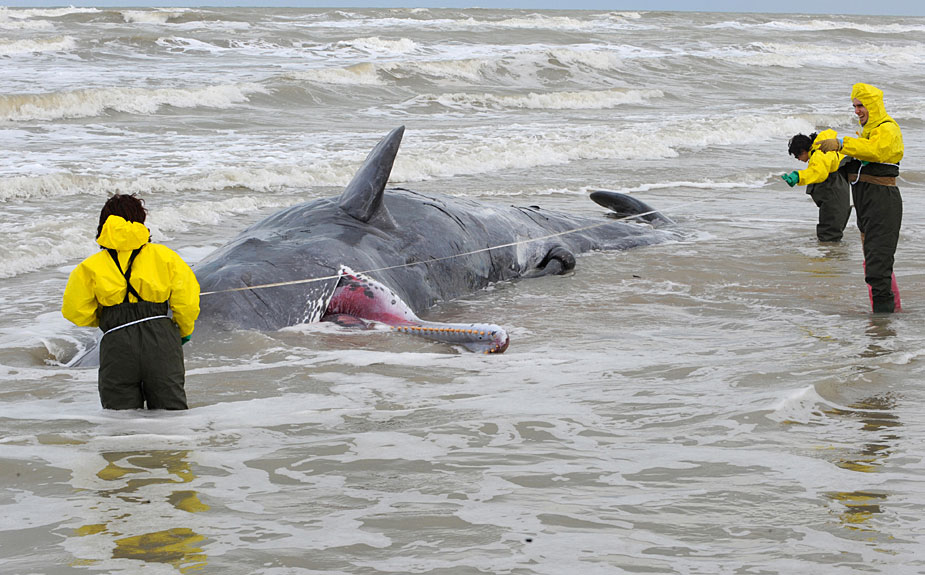 一群抹香鯨12月12日在意大利南部海灘擱淺,其中至少5頭已經死亡。據稱,這群抹香鯨共有9頭,其中有2頭經過救援已成功游回大海,目前相關人員對另外2頭正在進行救援。圖片來源:中國新聞網