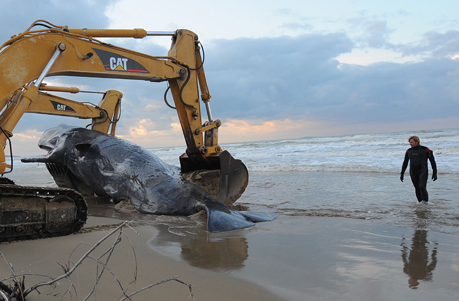一群抹香鯨12月12日在意大利南部海灘擱淺,其中至少5頭已經死亡。據稱,這群抹香鯨共有9頭,其中有2頭經過救援已成功游回大海,目前相關人員對另外2頭正在進行救援。圖片來源:中國新聞網