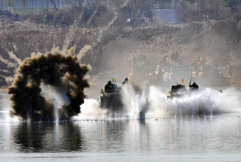 韓國陸軍進行大規模渡河實戰訓練