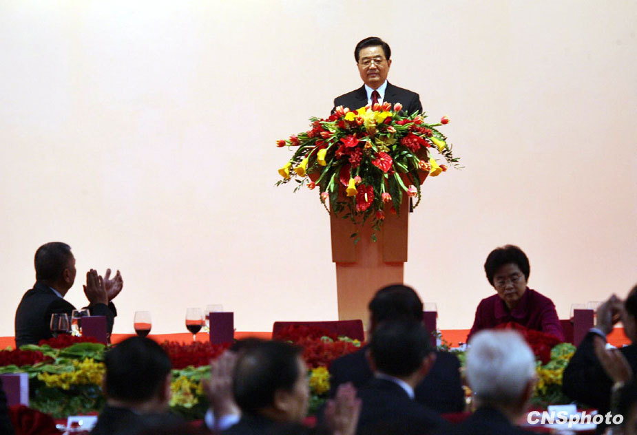 12月19日,國家主席胡錦濤在澳門出席特區(qū)政府舉行的歡迎晚宴并致辭。中新社發(fā) 鄭祚聲 攝