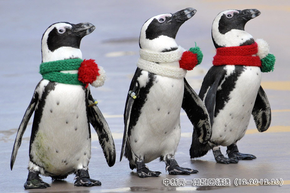 12月24日,東京橫濱八景島海洋樂園的企鵝披著圣誕圍巾在路邊行走。圖片來源:中國新聞網>>點擊觀看詳細內容