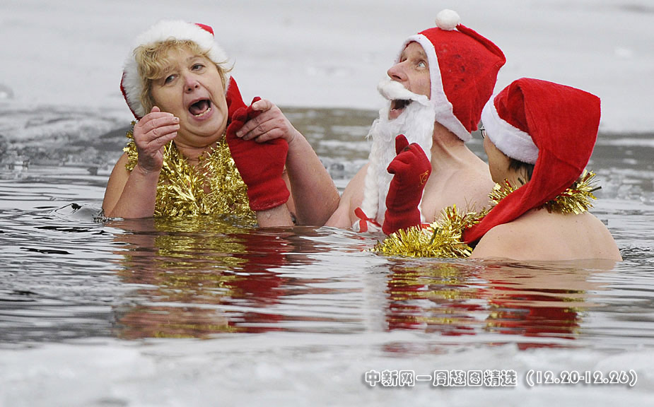 12月25日,德國柏林的冬泳俱樂部“柏林海豹”(Berliner Seehunde)的成員不畏寒冬,光著身子在已經結冰的Oranke湖中暢游一番。圖片來源:中國新聞網>>點擊觀看詳細內容