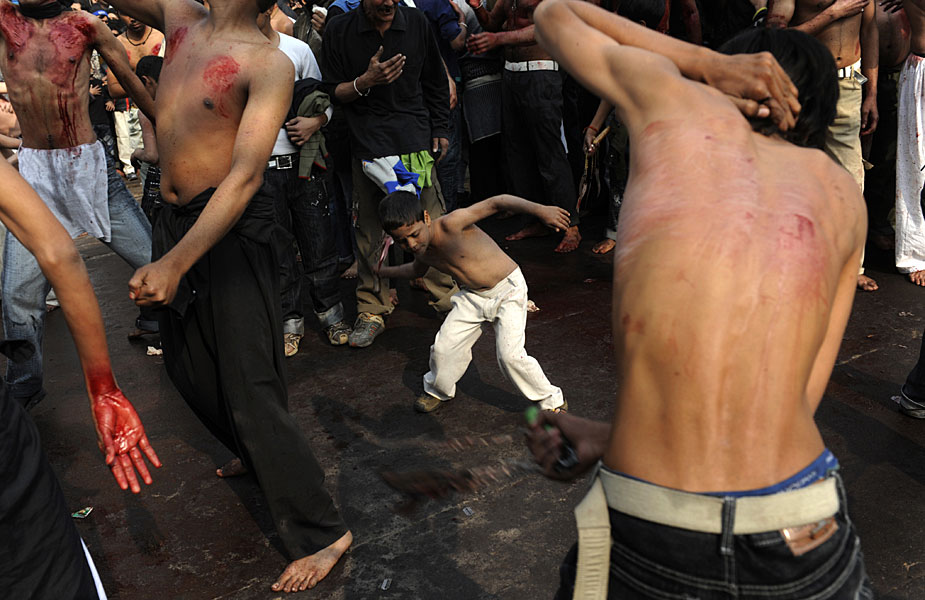 12月28日,印度穆斯林慶祝阿舒拉節(jié)。一些當?shù)啬滤沽衷趦x式上用鐵鞭抽打自己,以此慶祝節(jié)日。圖片來源:中國新聞網(wǎng)