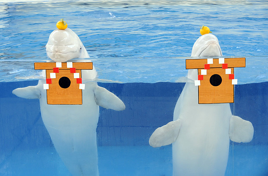 圖為海豚也在表演有趣的日本本土文化節目。