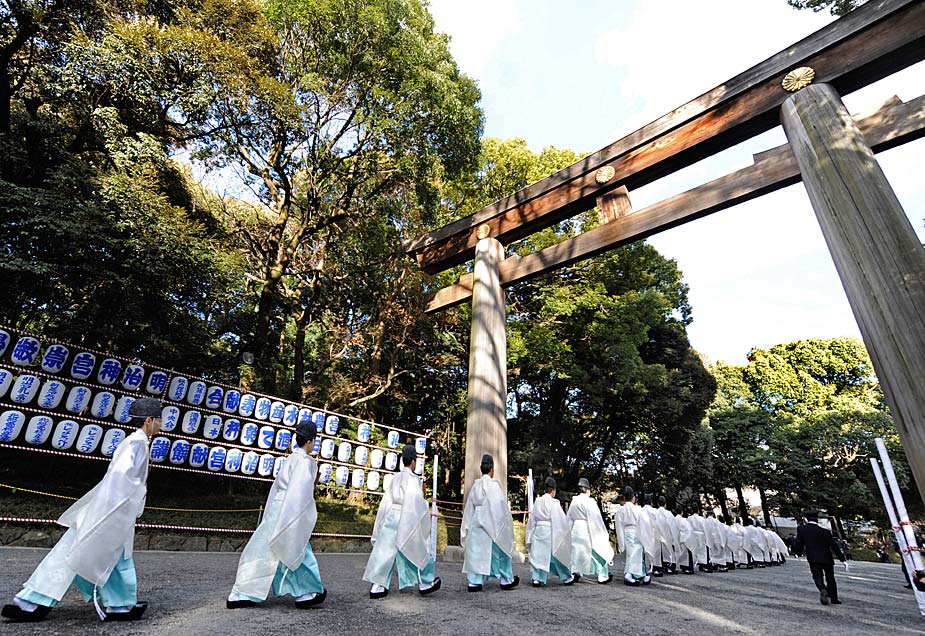 圖為12月31日,日本東京僧人走在去祭祀的路上。每年日本都要在新年來臨之際舉行祈福儀式。