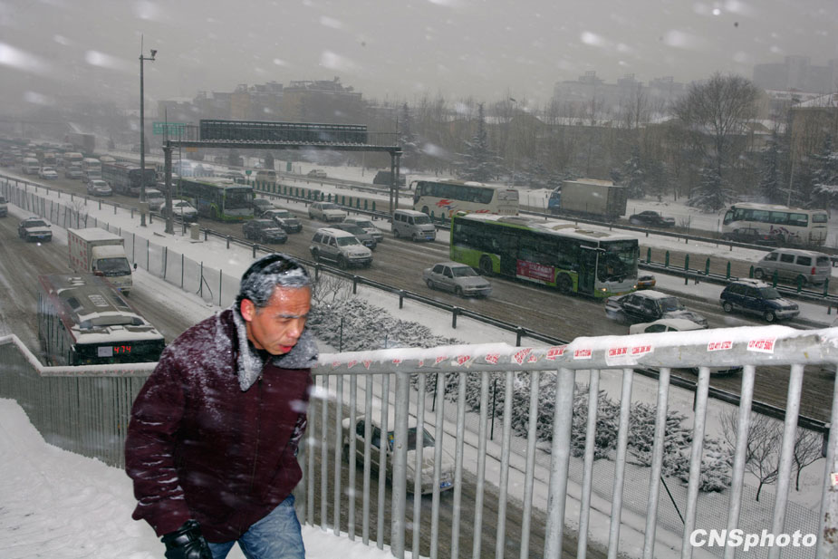 1月3日,北京城內大雪紛飛,積雪厚度為近年少有。天氣預報稱,預計雪花將飄灑一整天,北京地區的氣溫有可能達到-16℃,從而逼近40年來的歷史低溫極值。中新社記者 劉震 攝