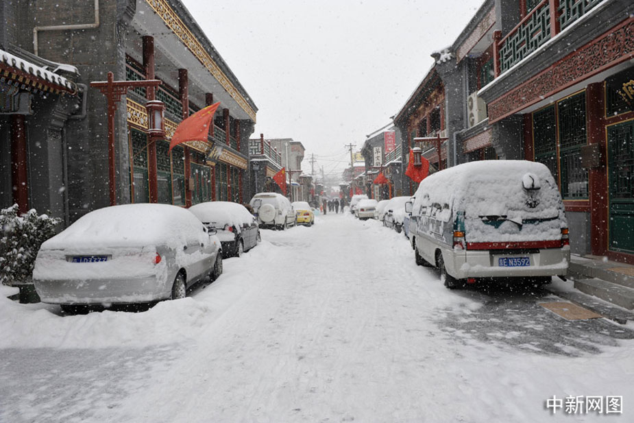 琉璃廠字畫街雪景。中新網記者 金碩 攝