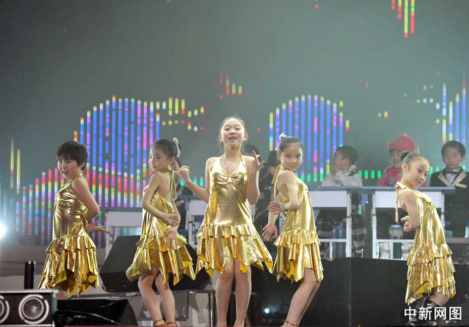 1月11日晚,第二屆音樂風(fēng)云榜新人盛典在京舉行,盛典現(xiàn)場的音樂課上,兒童版的Wonder Girl、Super Junior、邁克爾·杰克遜、曾軼可、大張偉紛紛登臺獻藝,讓現(xiàn)場觀眾們笑聲不斷。中新網(wǎng)記者 金碩 攝