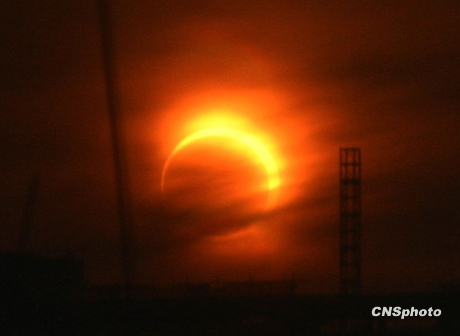 本世紀首場,也是全球未來1000年內環食持續時間最長的日環食1月15日劃過天際。日環食帶從印度洋經過緬甸進入中國國,由云南經四川省的部分地區,再穿過重慶市、湖北省西北部,直至華北地區。圖片來源:中國新聞網
